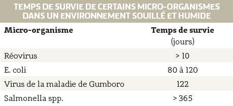 Tableau 1 : Temps de survie de certains micro-organismes dans un environnement souillé et humide2